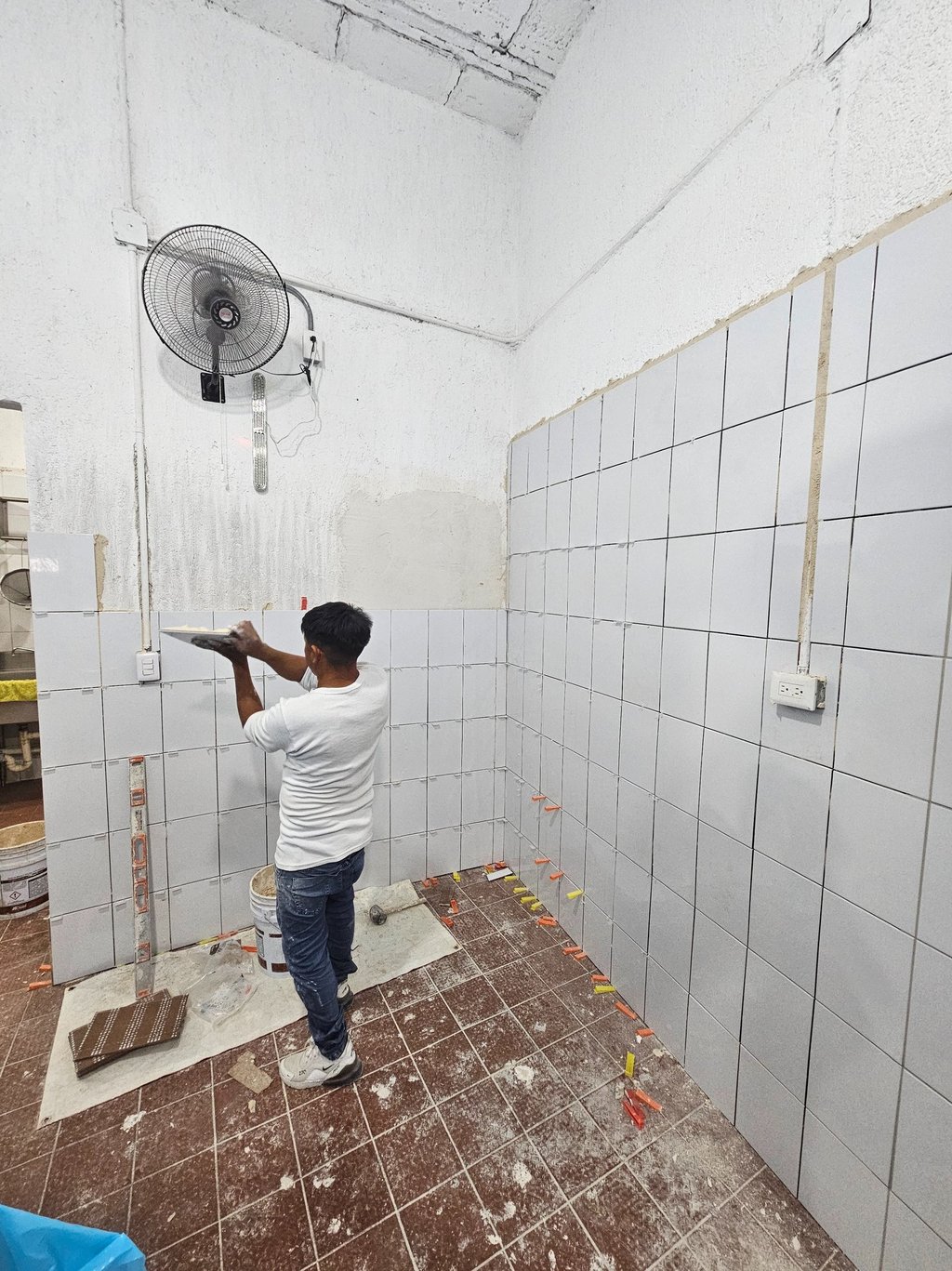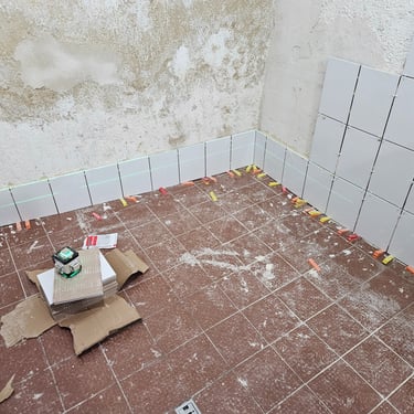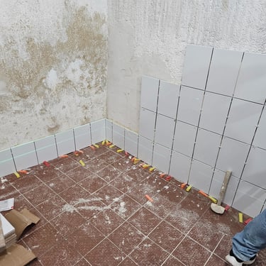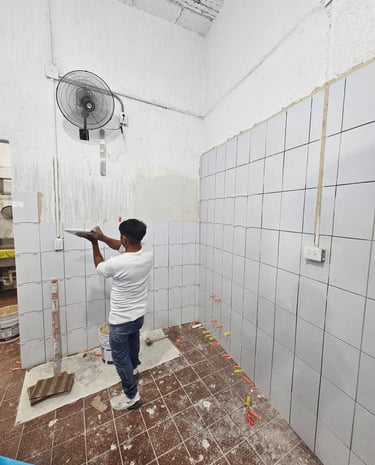 Para este proyecto, se optimizaron las áreas de trabajo mediante la instalación de un recubrimiento cerámico en muros, utilizando piezas de formato pequeño para un acabado detallado y altamente funcional. La ejecución se realizó bajo estándares de alta precisión, empleando tecnología láser para la alineación, así como niveladores y separadores que garantizan juntas uniformes y una superficie perfectamente plana. El proceso incluyó la preparación del sustrato con sellador, el aplicado de boquillas y una limpieza final profunda, entregando un espacio higiénico, resistente y con un acabado profesional impecable.