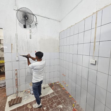 La ejecución de este revestimiento transformó el área de trabajo en un entorno higiénico y de alta durabilidad, donde el uso de tecnología láser y sistemas de nivelación garantizó una superficie perfectamente plana y alineada. Gracias a la preparación técnica del muro con sellador y al emboquillado preciso, se entregó un acabado profesional de fácil mantenimiento, eliminando irregularidades visuales y asegurando una instalación resistente al uso constante en zonas operativas.