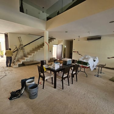 El proyecto Residencia CC consistió en una remodelación integral de una residencia de alto nivel ubicada en la ciudad de Mérida, Yucatán. La intervención contempló las demoliciones generales, trabajos de instalaciones y acabados en diversas áreas de la vivienda que requerían actualización, como parte del proceso para adaptar la casa a un nuevo diseño arquitectónico entregado por el cliente.